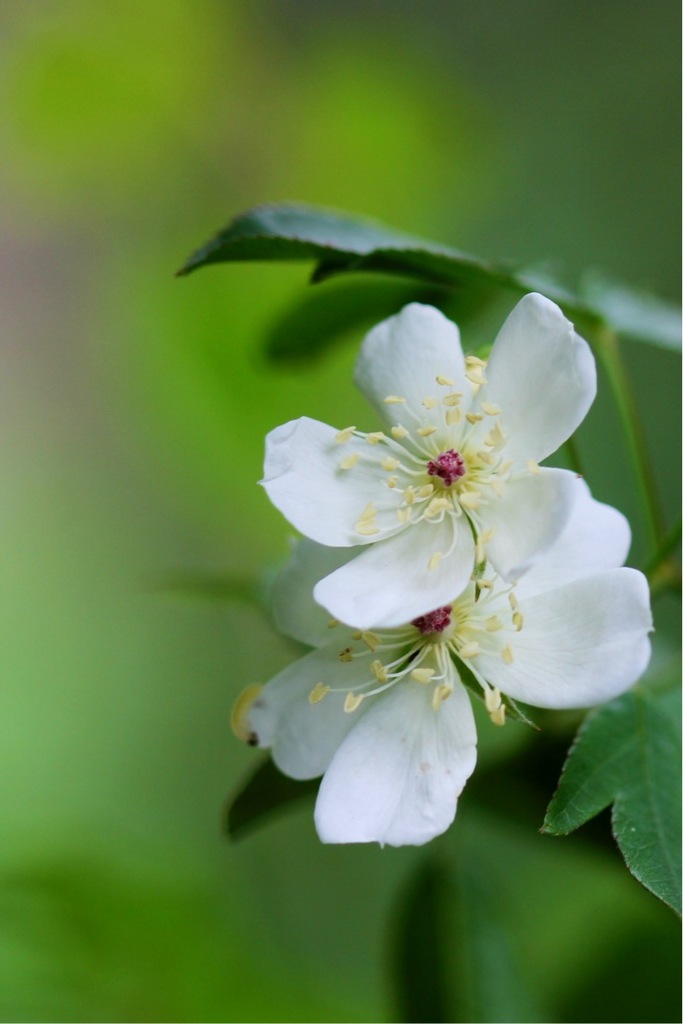 白の八重のモッコウバラをお迎えしようか毎年悩んでいるのですが、一重もいいですね~♪ 赤いめしべ(?)が可愛い。