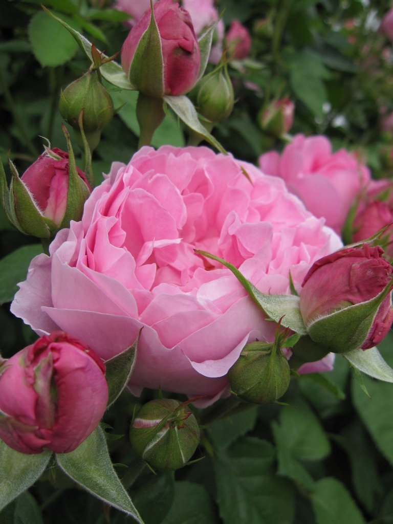 ピンクのフリルの花びらが美しい薔薇ですね。蕾もとてもかわいいですね。