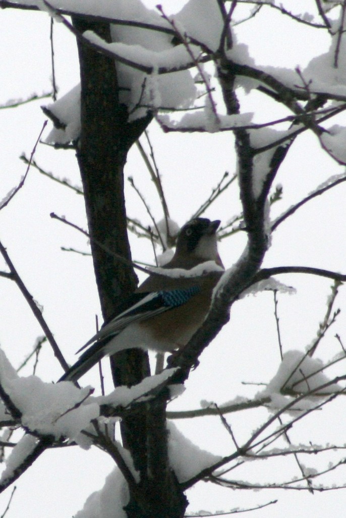 庭にくる野鳥の中では最も大きく30cm位あります。かなり派手な色使いで美しいのですが、鳴き声がヂャーっと興ざめです。どんぐりなどを丸呑みします。