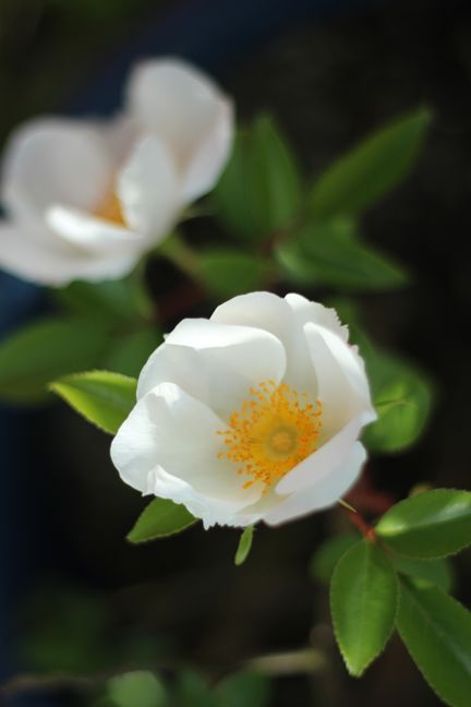 真っ白で一重のナニワイバラだーいすきです。でも美し花にはトゲがあるの典型ですね。