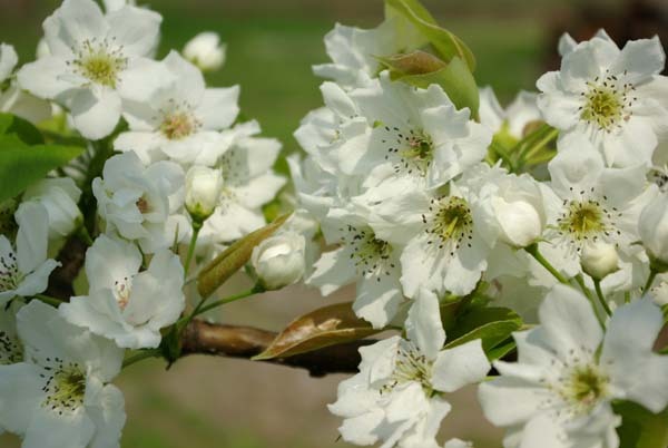 私も梨の花は初めてみました!白くて可愛らしいお花ですね。