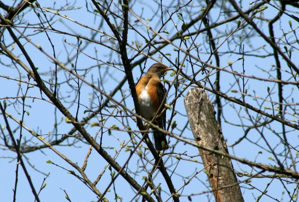ここ数日に庭に来た野鳥です。これは、お隣の春楡の梢にとまった軽井沢の町鳥であるアカハラ君です。