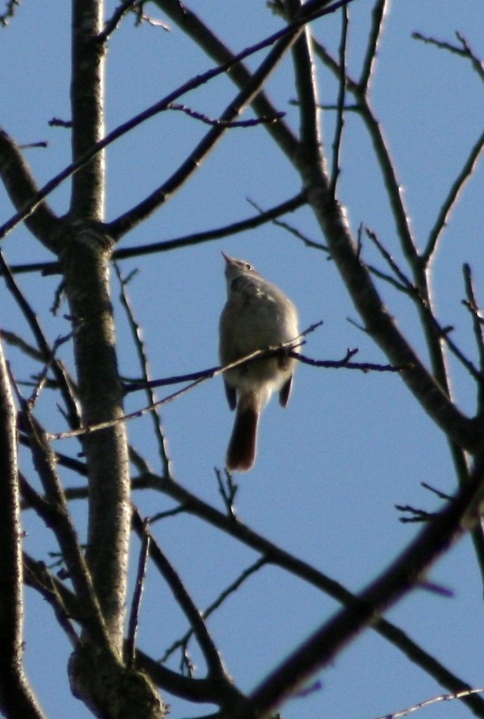 これは、20m位の山栗のてっぺん近くの小枝にとまって盛んにさえずっていたウグイス君です。真下から300㎜の望遠で撮ったのですが、全体像が分かりにくいのが残念です。
