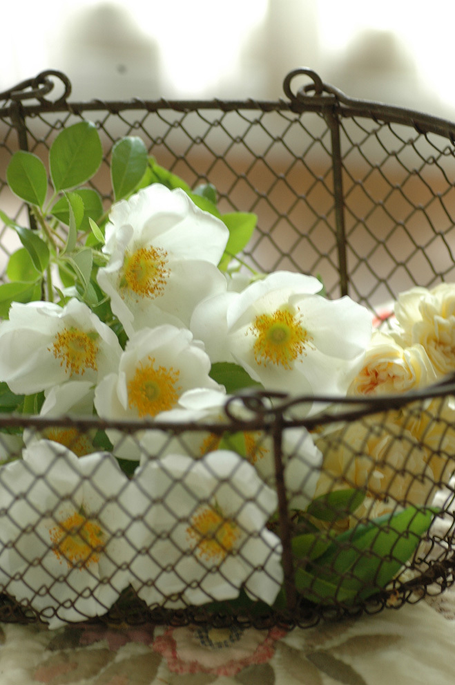 こうやってカゴに入れるとかわいいですね^^ ナニワイバラは棘がいたくないですか?