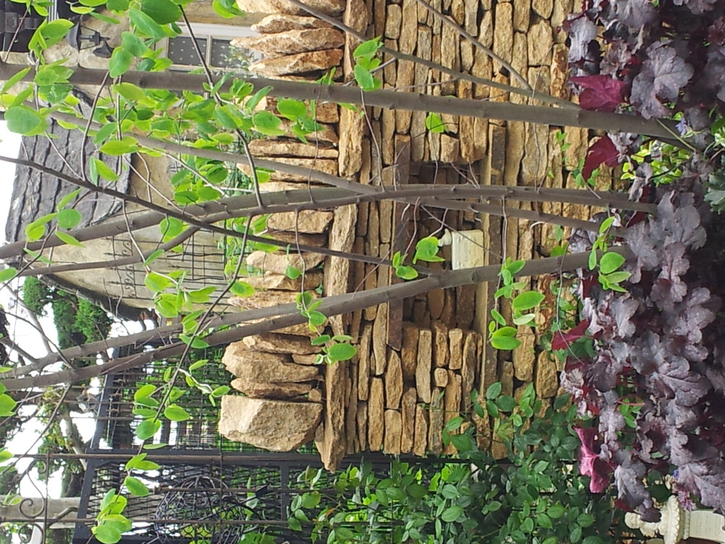 石積と植栽の調和がでてきましたね。この写真では銅葉が石材と良くマッチしていると思います。