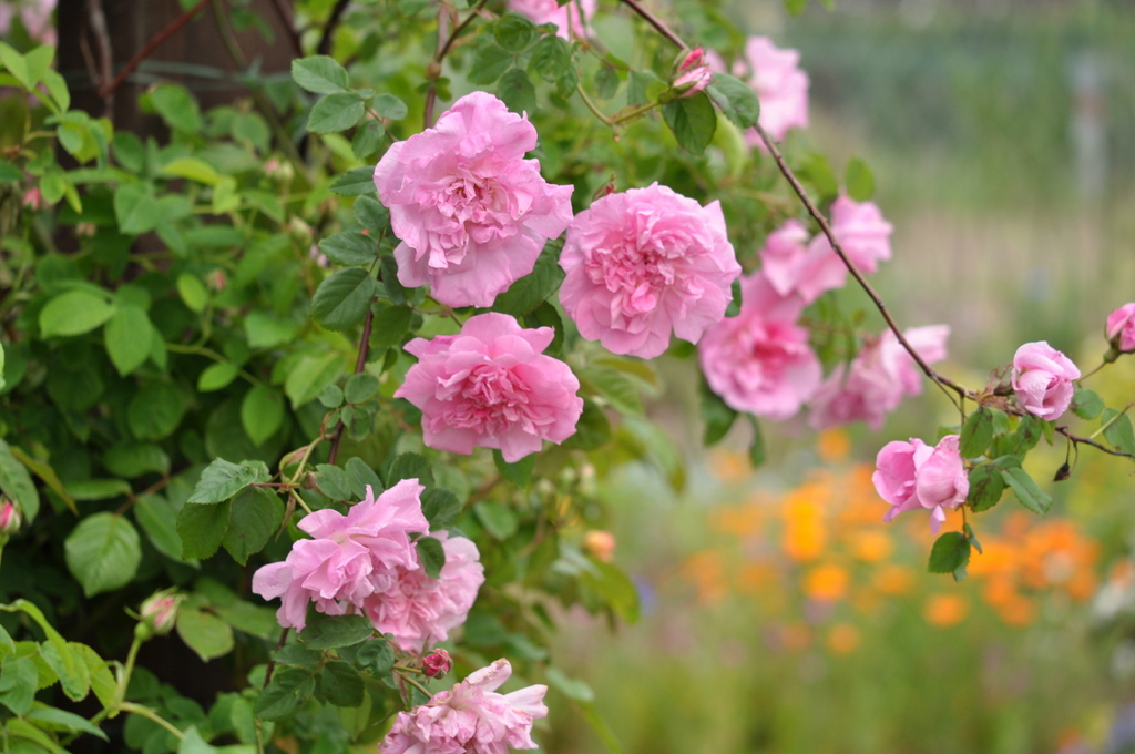 柔らかい感じが、素敵ですね!結構大きくなるクライミングローズなんですね!バラ苗で入ったことがあります。日陰でも可とありました。トゲも少ないらしくて、社長に教えてあげなければ〜(^^)