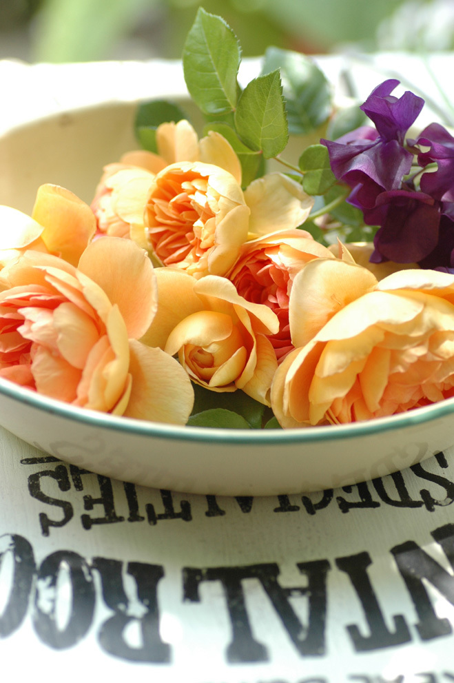 ホーローというのがまたオシャレ!!綺麗に咲いたばかりのバラをアレンジに使うのって私も勇気要ります・・・