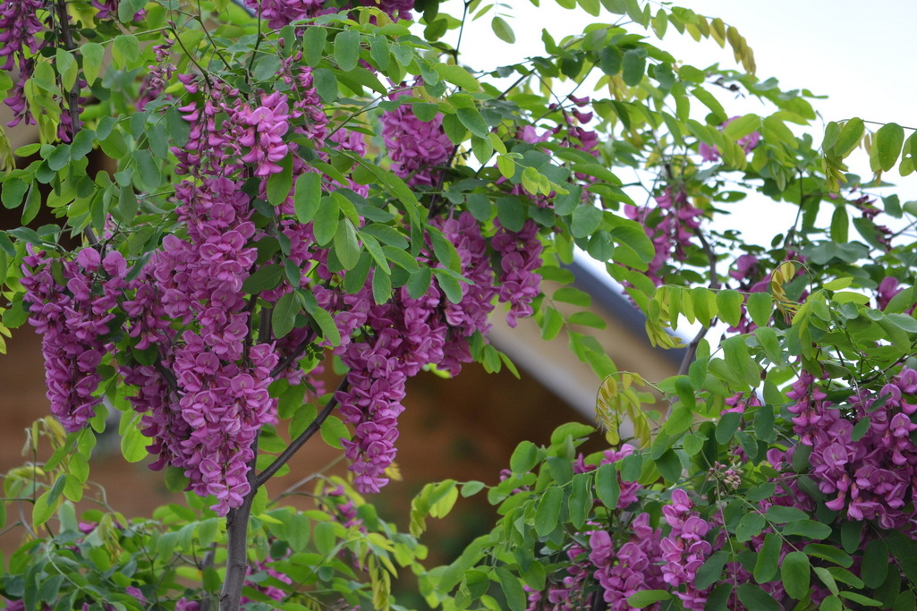 すてきな色ですね。新緑によく映えています。うちのフジは、今年花がゼロ!でした!
