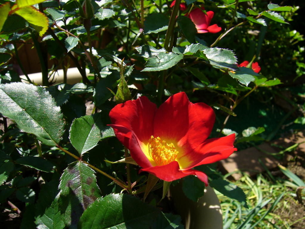 今年の正月に購入したばかりなのでつるにはまだまだ先ですが、他のバラより先に咲きました。