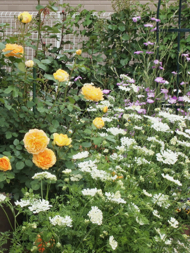 ばらの存在感アップ!みなさんおっしゃる通りオルラヤは丈夫で育てやすく、しかも可憐で・・・名脇役ですよね^^