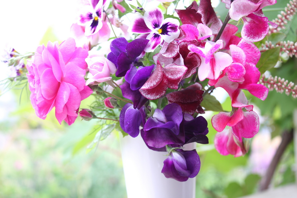 かわったスイトピーですね!アルキミストさんは、こういう紫や赤系の配色もお得意ですよね。ステキです^^