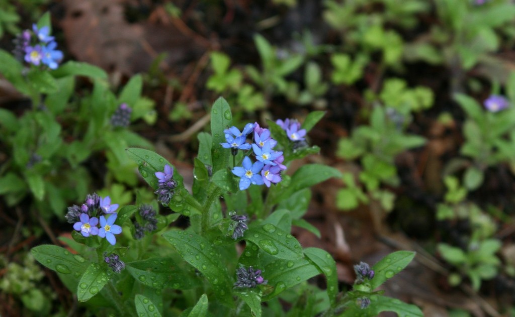 庭にこぼれ種から芽を出した勿忘草がやっと咲き始めました。