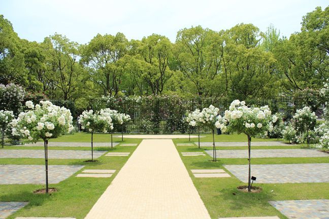 この写真はハウステンボスですか?私の今考えている庭の構想に近いものがあり共感が持てます。写真のスタンドローズはアイスバーグですか?