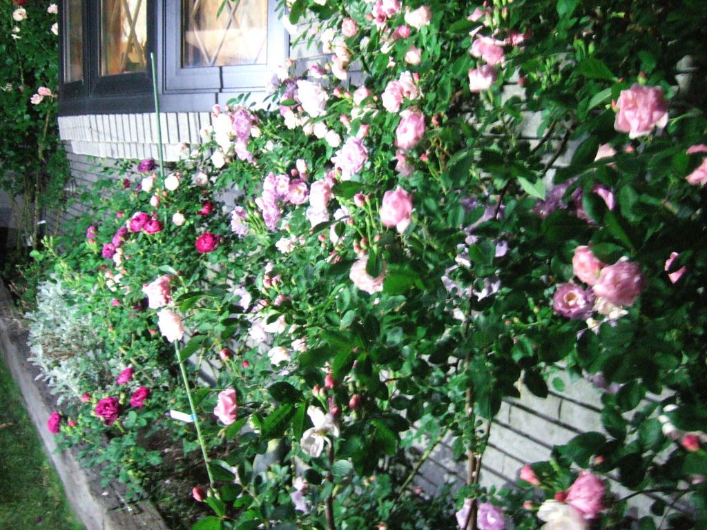 夕暮れに、お気に入りの窓辺の下で、ライトアップ。