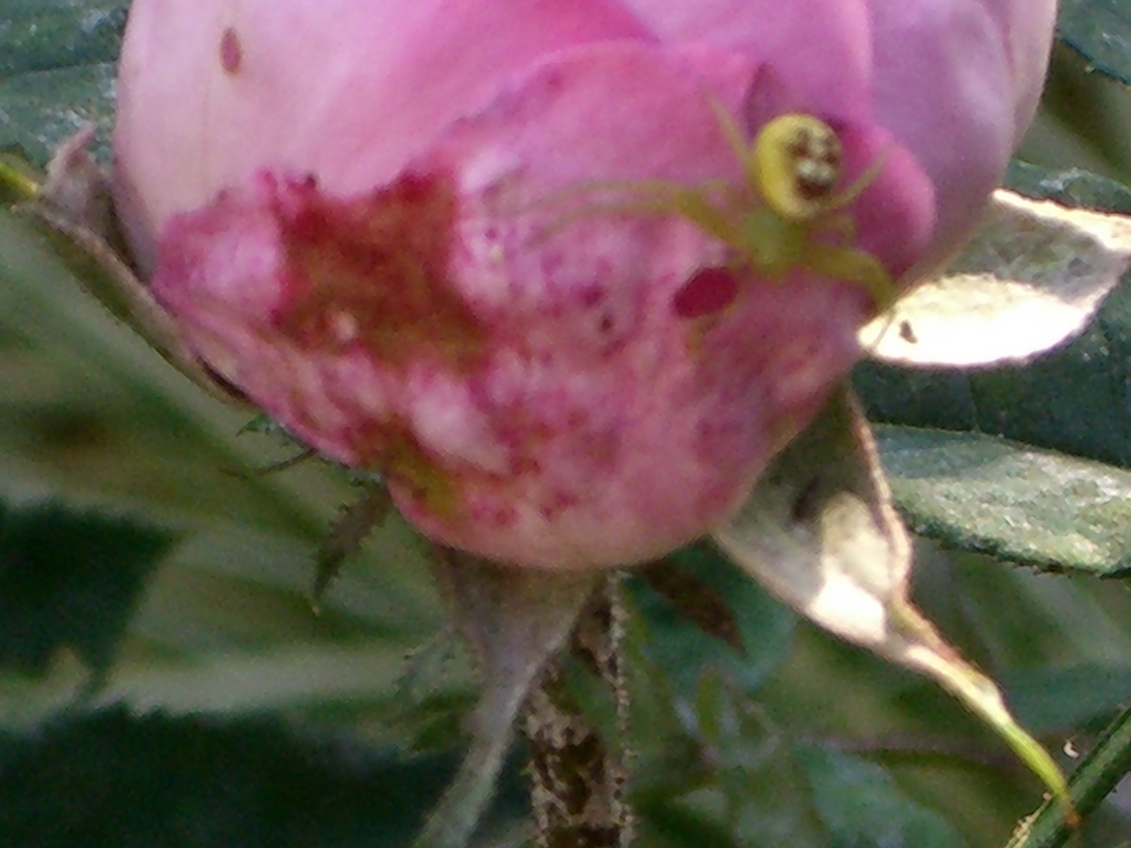 真島康雄さんのバラの診察室に出てくるクモ、初めて見つけました。風が強かったのでボケボケですが・・・