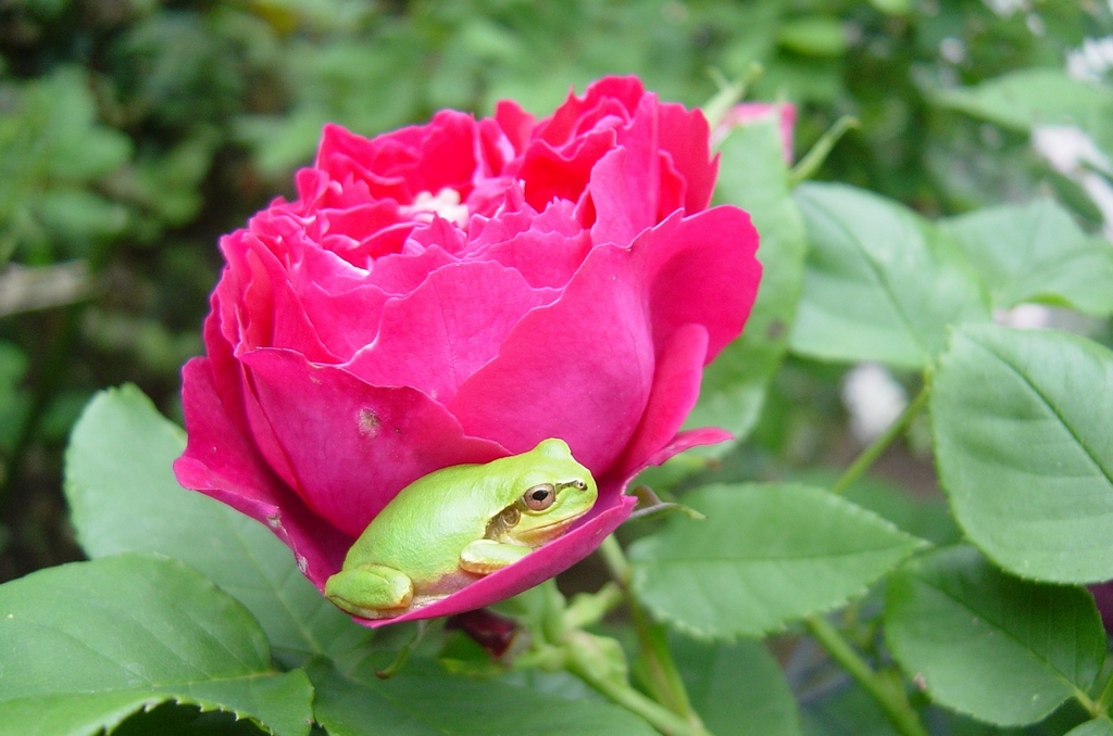いつものカエルくん、やっぱり薔薇の中がいいんですね^^アメージングガーデンでも、薔薇の中のカエルを何度か、見つけました。カエルさんは、薔薇がお好きなんですね^^