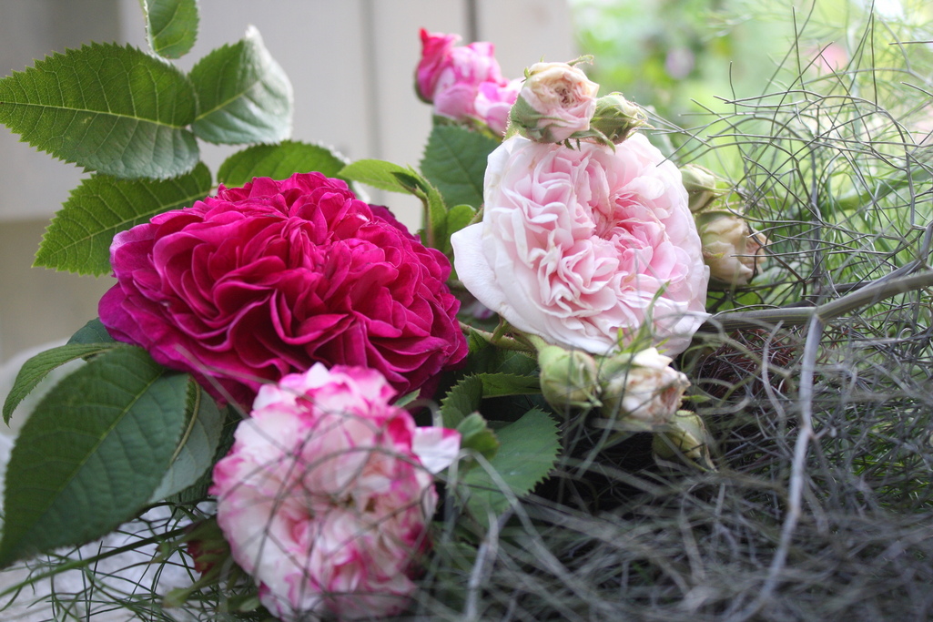お友達も素敵なオールド・ローズを育てていらっしゃるのですね!!良い香りでしょうね~!フェンネルをアレンジに使っておられるのが斬新ですね!!