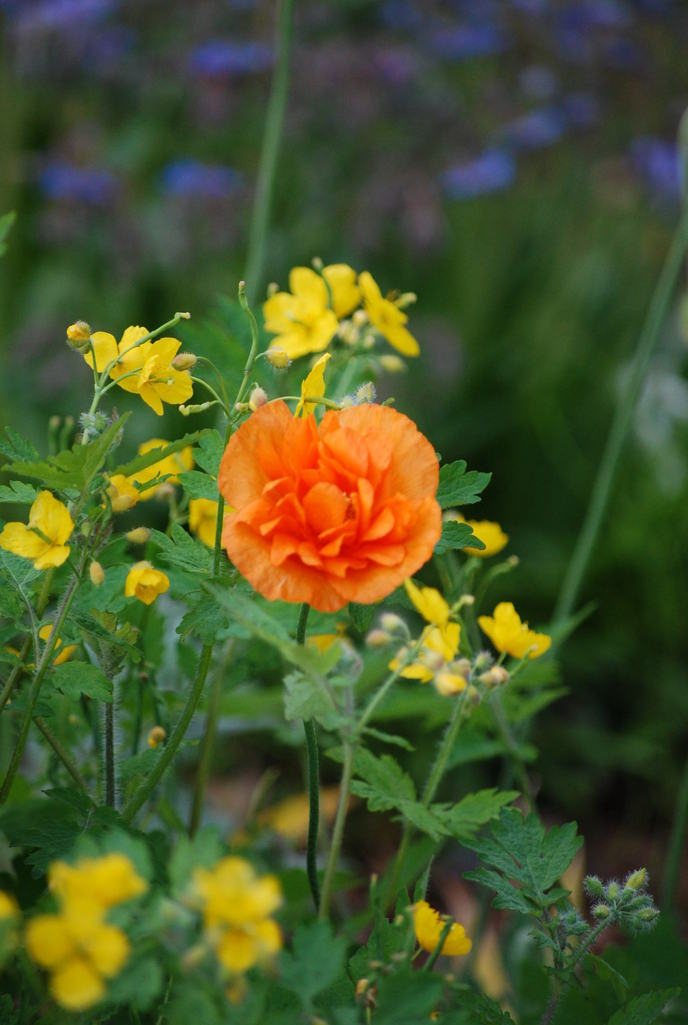多年草のポピーこぼれ種でも出てくるのでいろいろなお花とコラボ野草のクサノオウといい感じです。