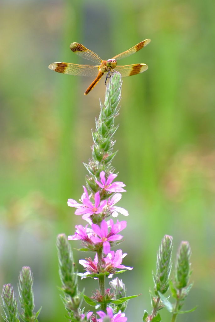 水辺のかわいいトンボ。淡い色できれいなトンボでした。