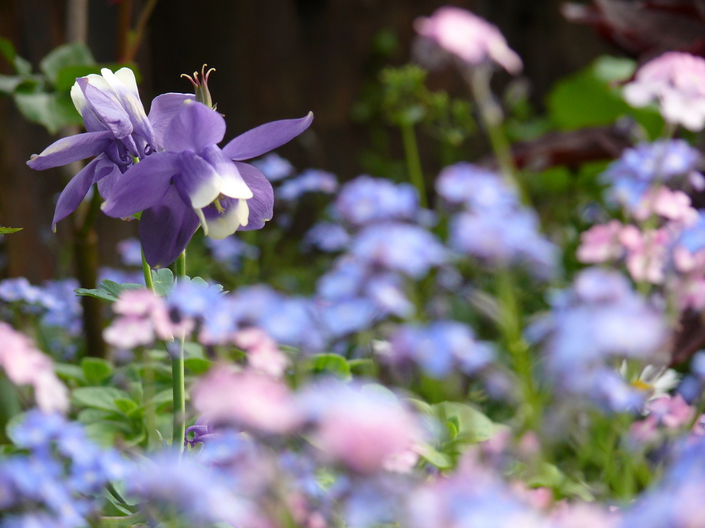大好きな色合いです。小花に包まれた、オダマキが優しいですね^^