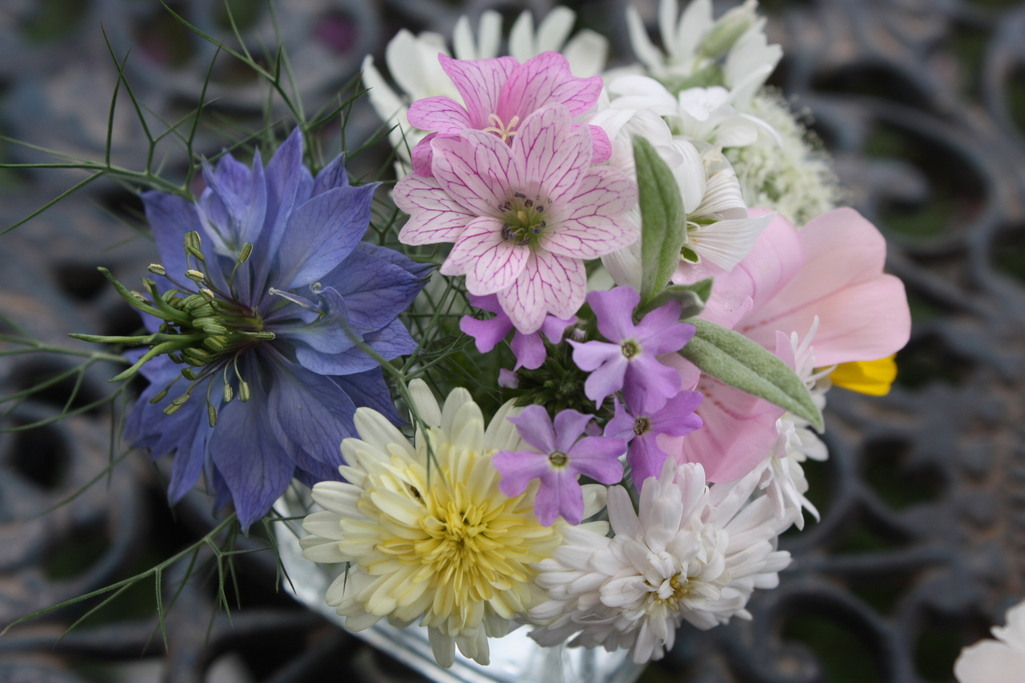 お庭に咲いてる季節の花で創るアレンジが一番美しいと思います。