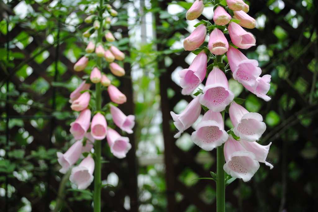 ジギタリスとバックのラチスがかさなり近未来的な写真にも見える現代的な一枚だと思います。