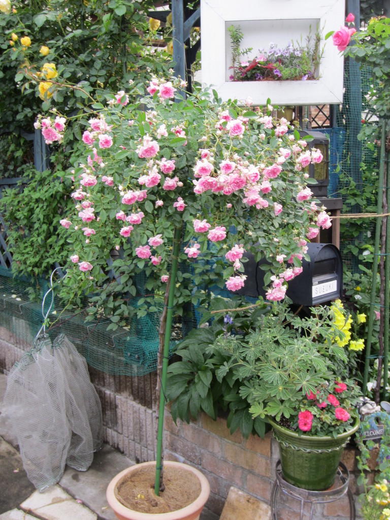 数年前 コマツガーデンから購入した芽衣のスタンダードです。仕立ては3年ほど前から石井強さんの仕立て方をまねてワイアーを曲げて作っています。来年はもっと長くなりますように。