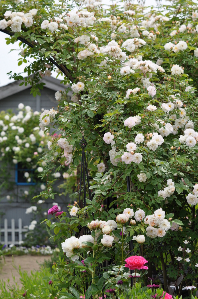 後ろの見えるおうちとかわいいバラが素敵な雰囲気♪