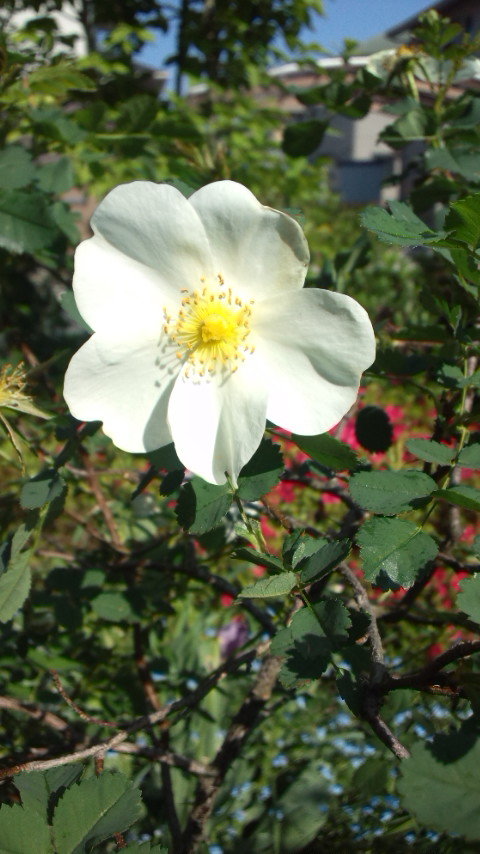 我が家のファーストローズはオールドローズのピンピネリフォーリアです。