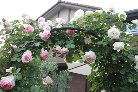 花びらが幾重にも重なってクラシカルでとても優雅な薔薇ですよね~2種類のピエールを咲かせるアーチはとっても素敵ですね^^