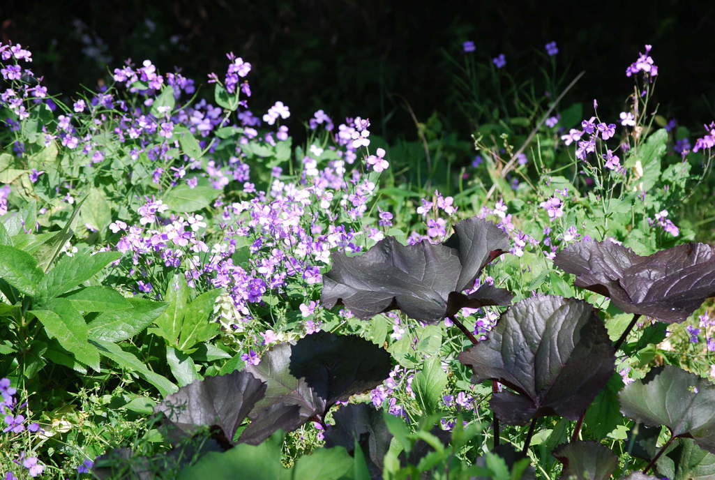 リグラリアの色がシックで、ムラサキハナナとステキに調和していますね^^