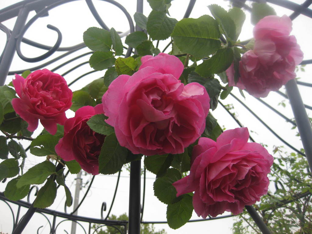 アイアンのドームを見上げてバラを写したことが、より薔薇を美しくしていると思います。