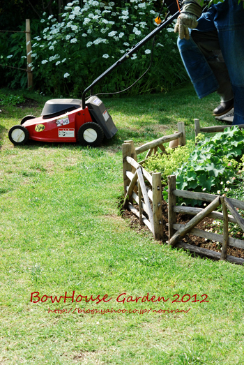 芝生もさることながら、ウッドの花壇?ミニフェンスが素敵♪
