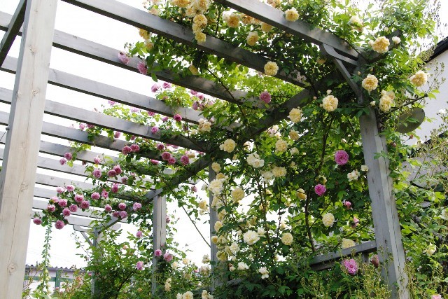 こんなに咲くと香りもすごく漂っているんでしょうね~♪ 最近、ピンクと黄色系のコラボ、気に入っています(*^_^*) 私もこんなパーゴラ作ってもらおう~!!
