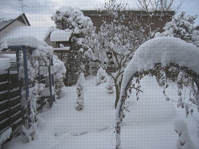 雪化粧の庭も白黒の写真の様でいいでしょう~