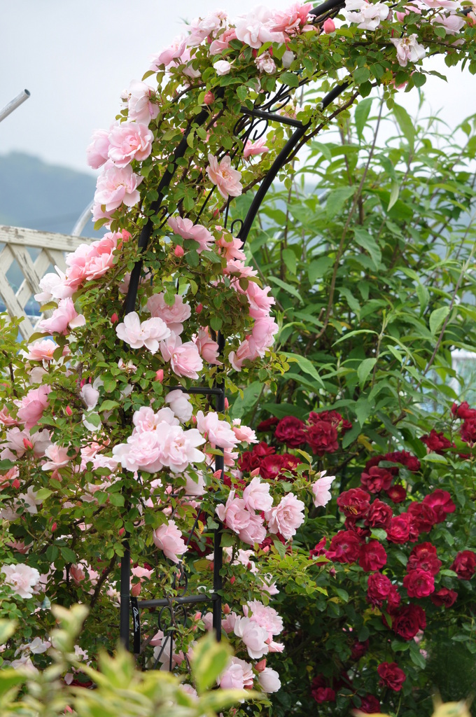 上に登ってみます!アーチに張り付いてお行儀良く咲きます