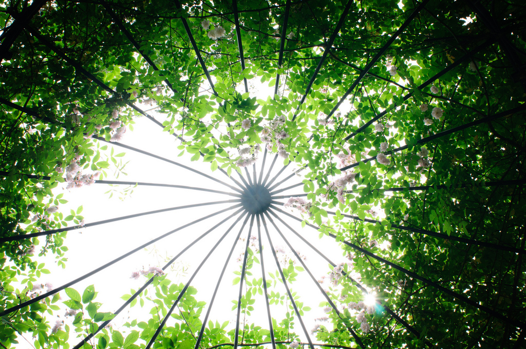 すごく綺麗に誘引されて、まるで和傘のようですね~!! 私も優雅な気分に浸りたいナ・・・
