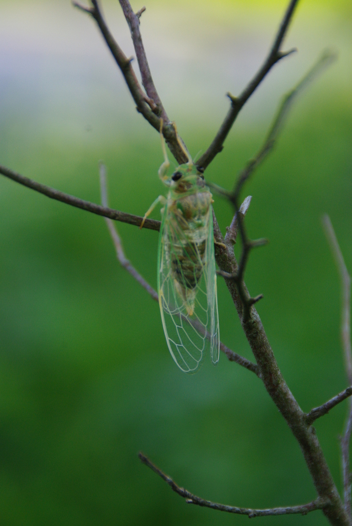 羽化してまもないセミですか?全体がグリーンで透明感がありますね。