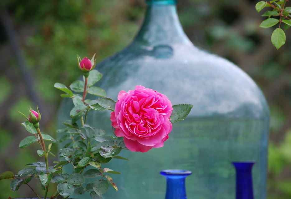 バラもステキですが、瓶の色もステキです!!