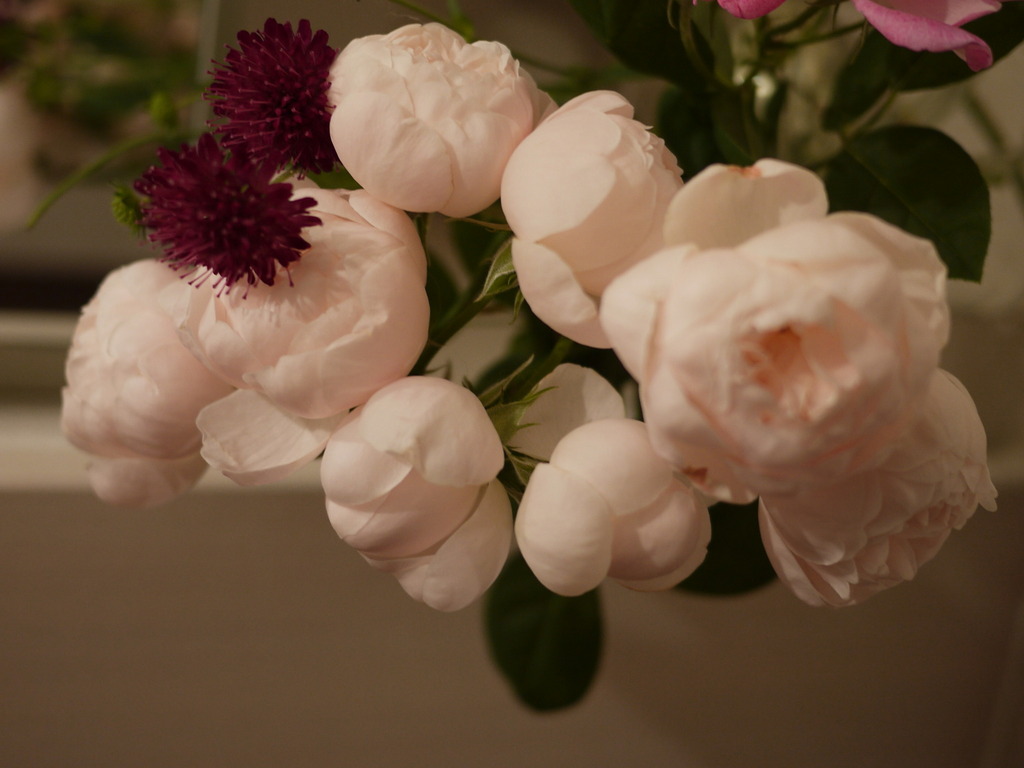 バラなんですか??なんて可愛いコロンコロン。松虫草(?)とよくお似合いですね~
