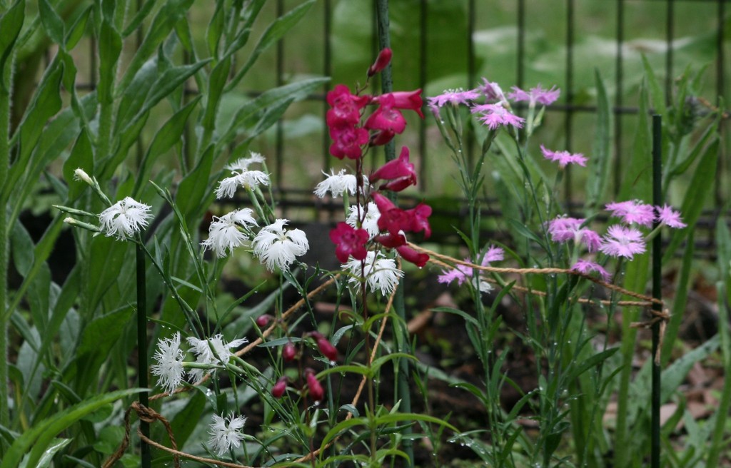 赤はペンステモン。白とピンクはカワラナデシコです。