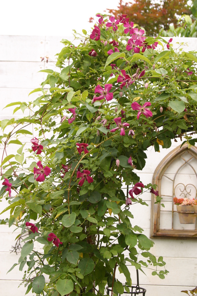可愛らしい花がたくさん咲いてとてもきれいですね。こんな写真をみると、私もクレマチスも増やしていきたくなります。