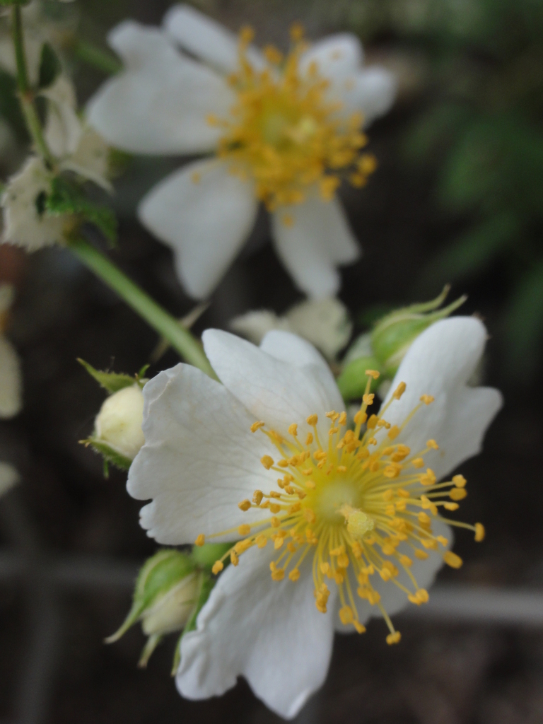 斑入り野いばら「プッチーニ」小さな蕾だったのですが、今朝、いきなり咲いているのを発見しました!!