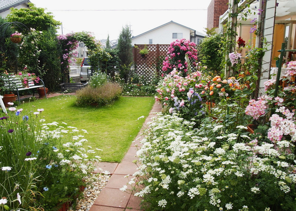 花盛りのお庭になりましたね。芝生もとてもきれい。花の香りの風がそよぐのでしょうね。