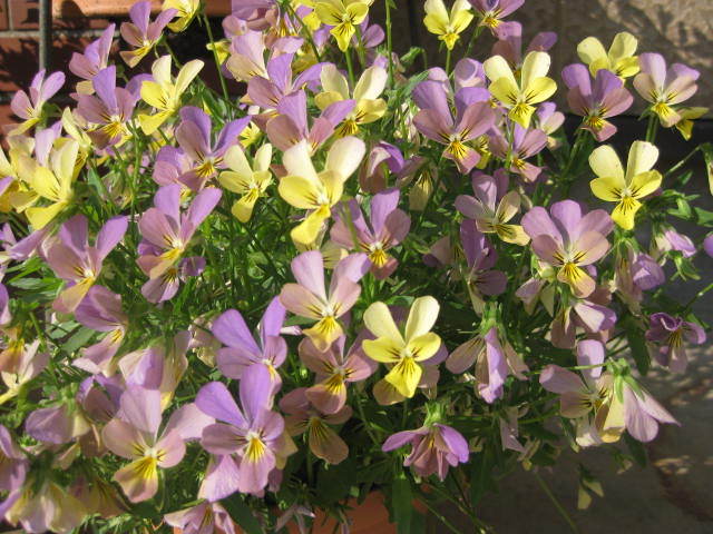 まだ花盛りなんですね。かわいい!同じ株でラベンダー色と黄色の花が咲くのですね。