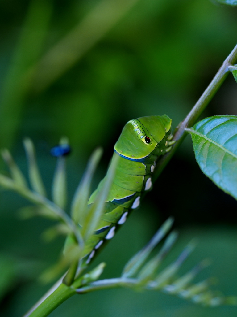 こうやって写真に撮ると一層かわいいですね^^ 私はアゲハの幼虫、好きですよ♡そういえば、ガーデンルーを植えたけど幼虫をみなかったなぁ。我が家では時々ハゴロモジャスミンの所にいます^^
