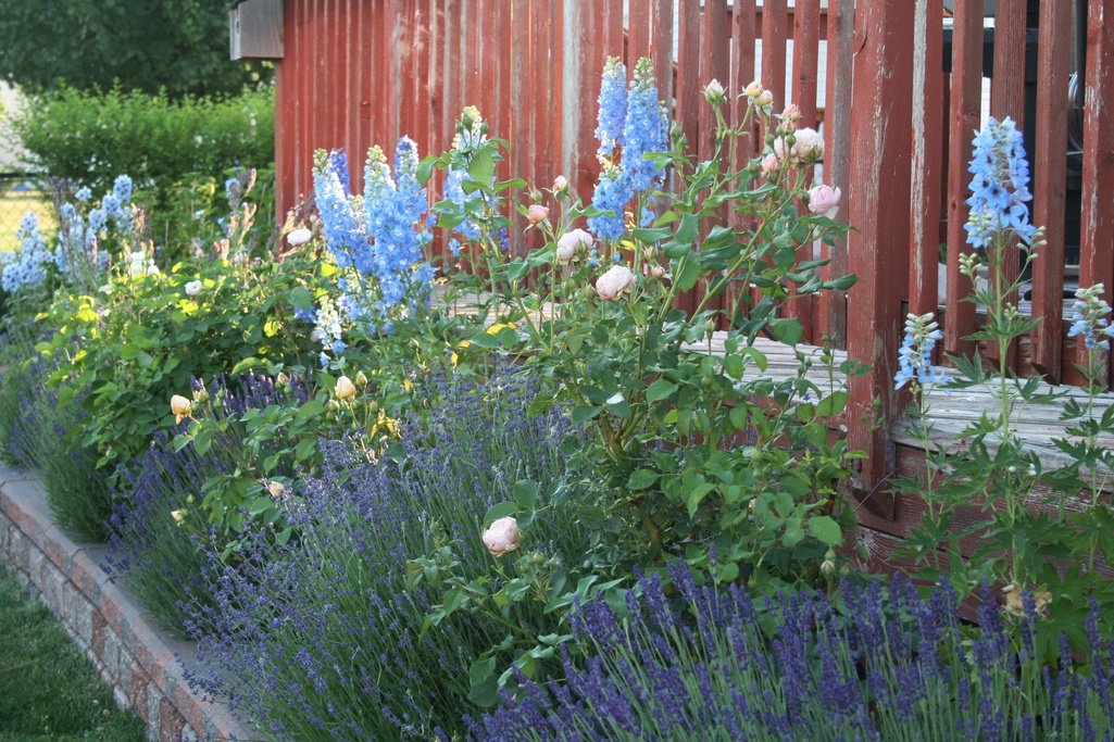 デルフィニウムの咲くこのブルーの光景、まってました~(*^^*)!! ラベンダーと相まって、とっても爽やかです。素晴らしいボーダーですね!