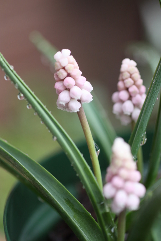 わぁ、ピンクのムスカリ!かわいいですね。青いのはどんどん増えていくけど、珍しい品種は難しいですよね。