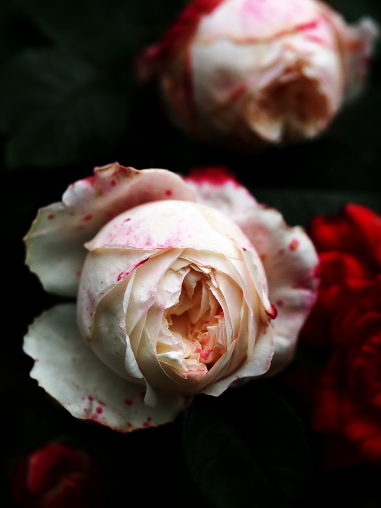 dy313さん(^^) ちょっと気難しい薔薇でこのまま展開しない事も多いのが難点(;_:) 灰色カビ病に罹りやすいのです(;_:) 八分咲きの頃の真っ白な花弁と真っ赤な糸ピコがこの上なく上品な雰囲気を醸し出します(^^)