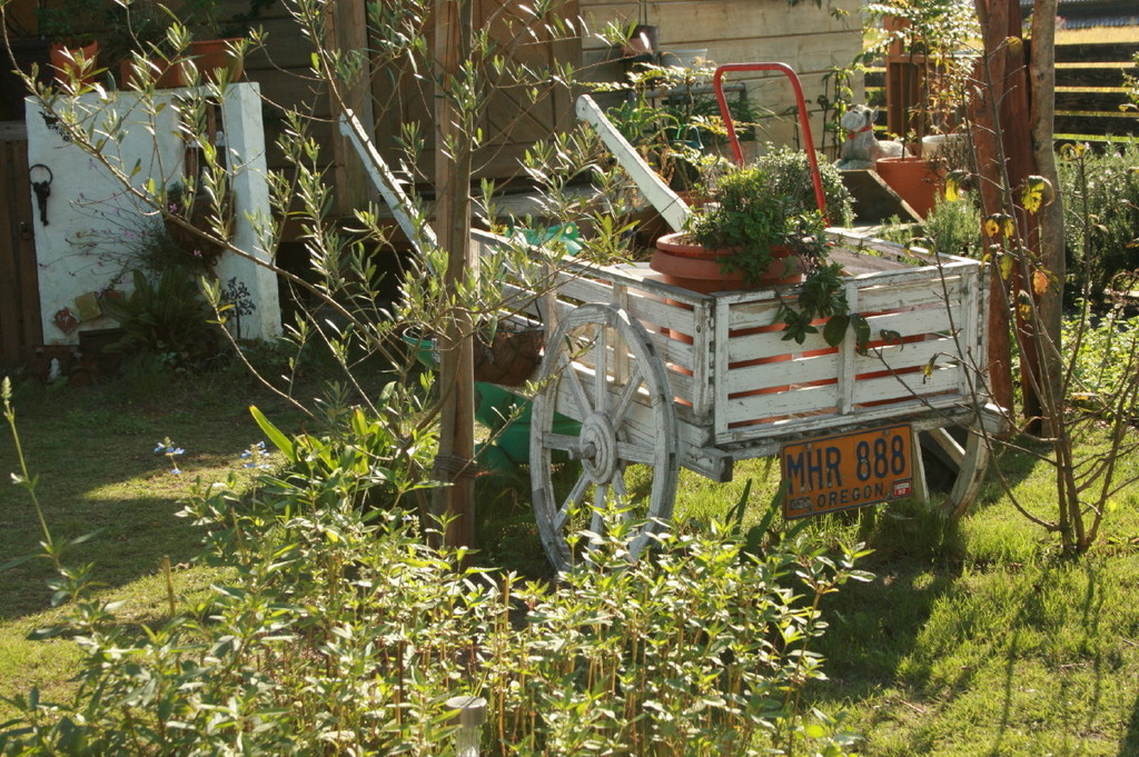 ホームセンターで格安購入の人力車。だいぶいい色合いになってきました。